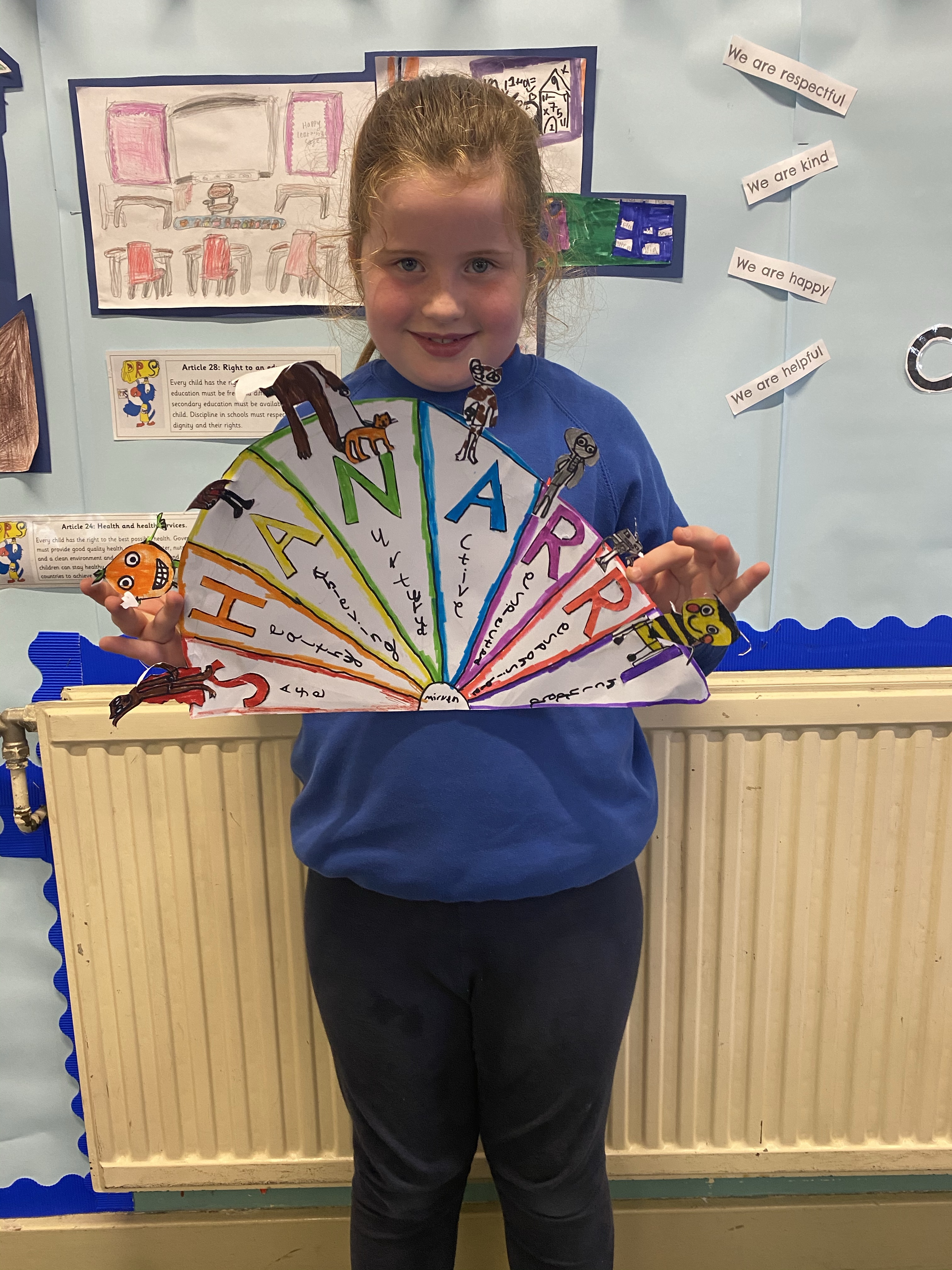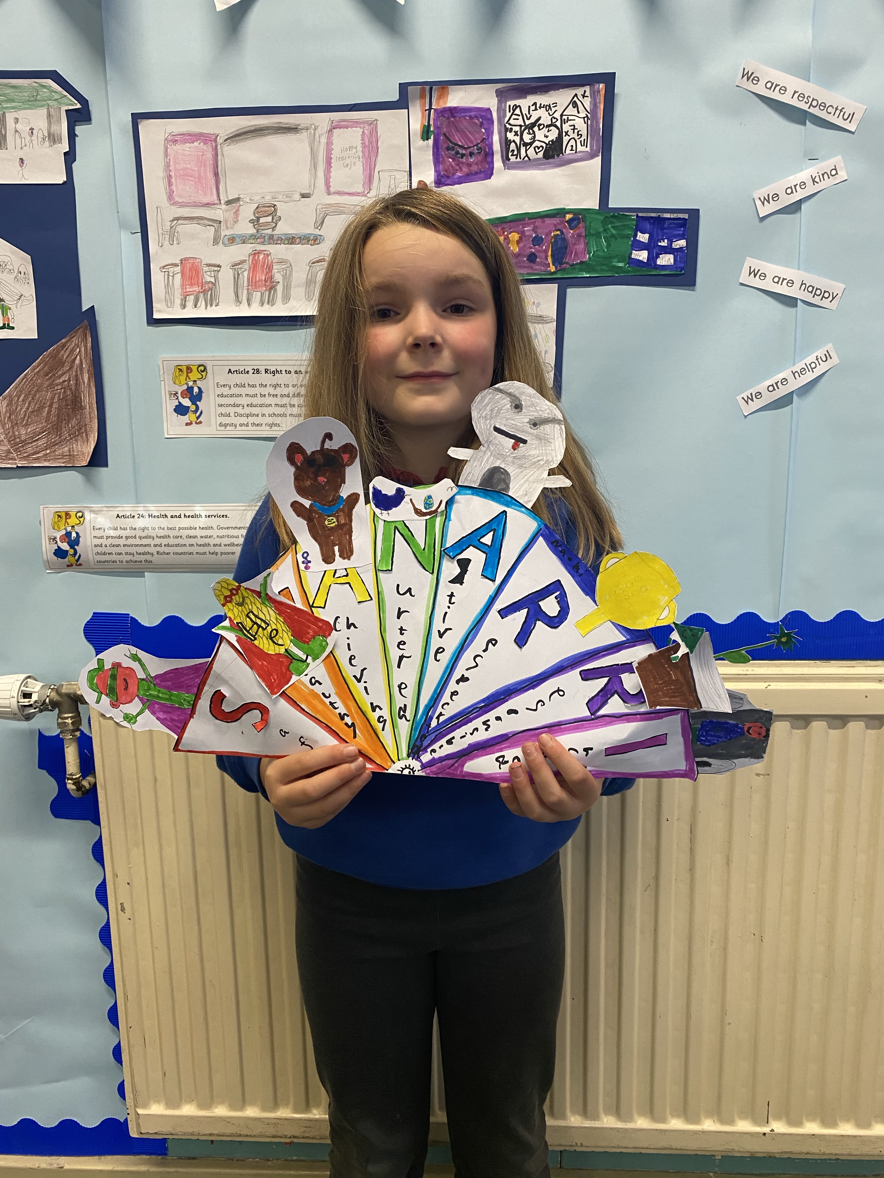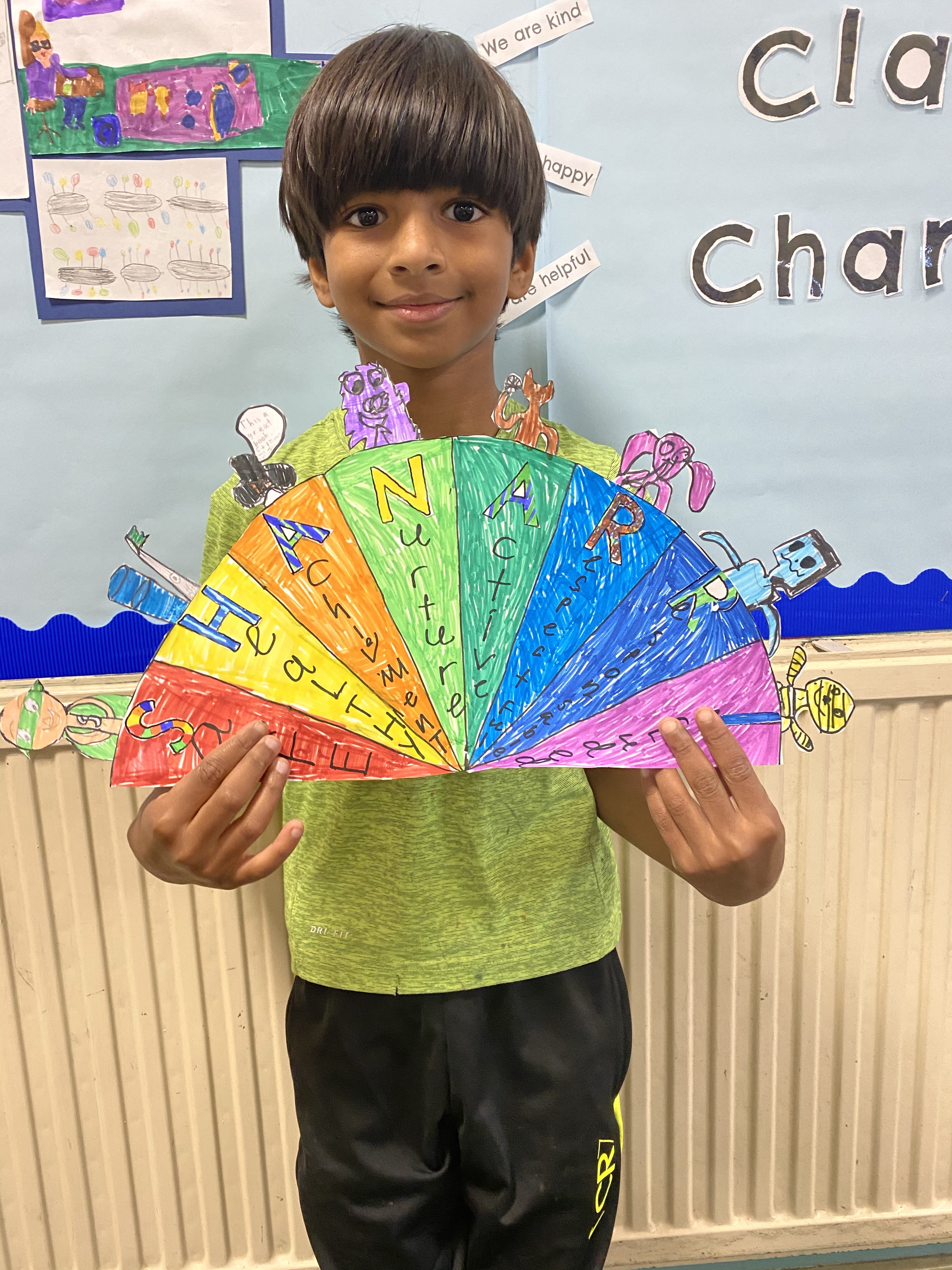 We are very proud of all our hard work this term! We worked very hard to create our own SHANARRI wheels. We explored the wellbeing indicators and designed our own characters for each aspect of the wheel. Please ask your child to explain the wheel at home and share their SHANARRI story with you.