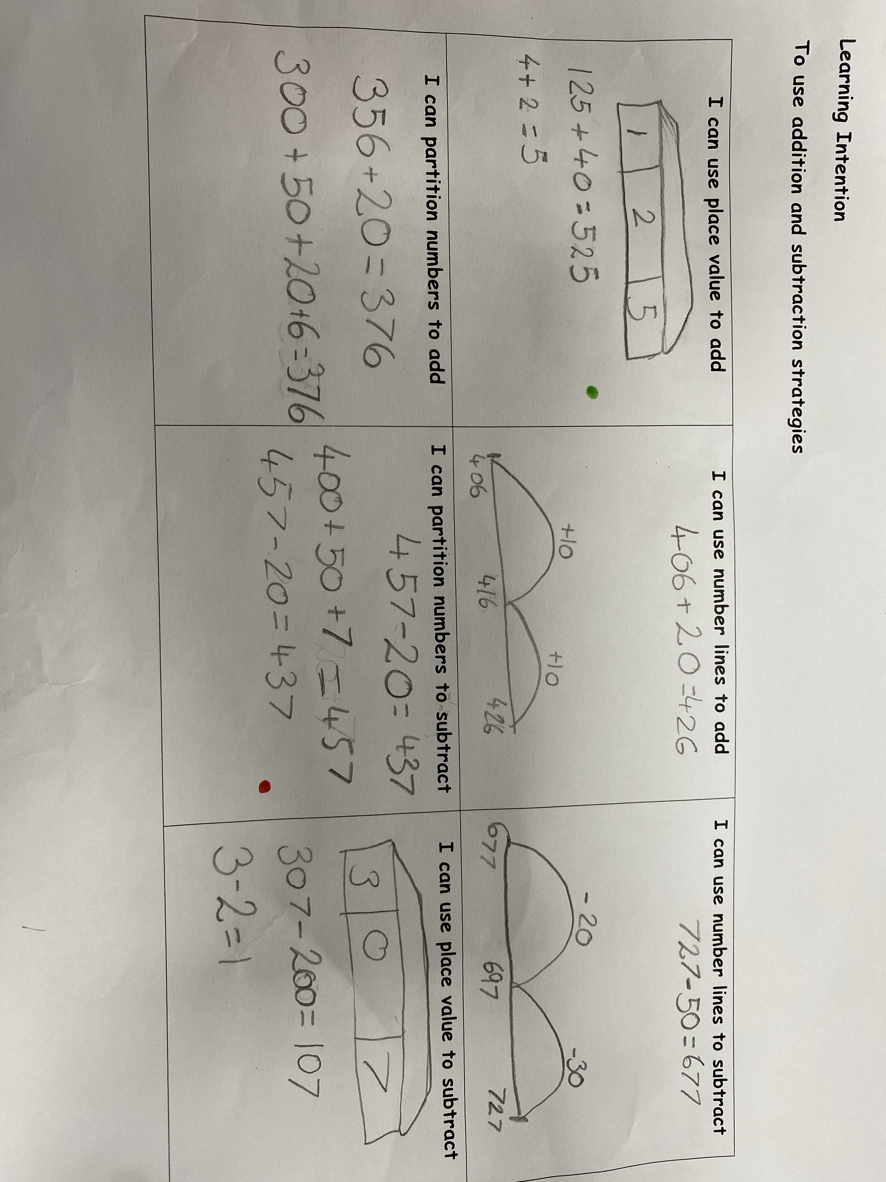 This week we have been learning to use different strategies to help us add and subtract multiples of ten to three digit numbers. We have been focusing on the following strategies – place value , partitioning and number lines. We know it is very important to be able to use a variety of strategies in our Numeracy lessons. We would love to share these strategies with you at home this weekend.