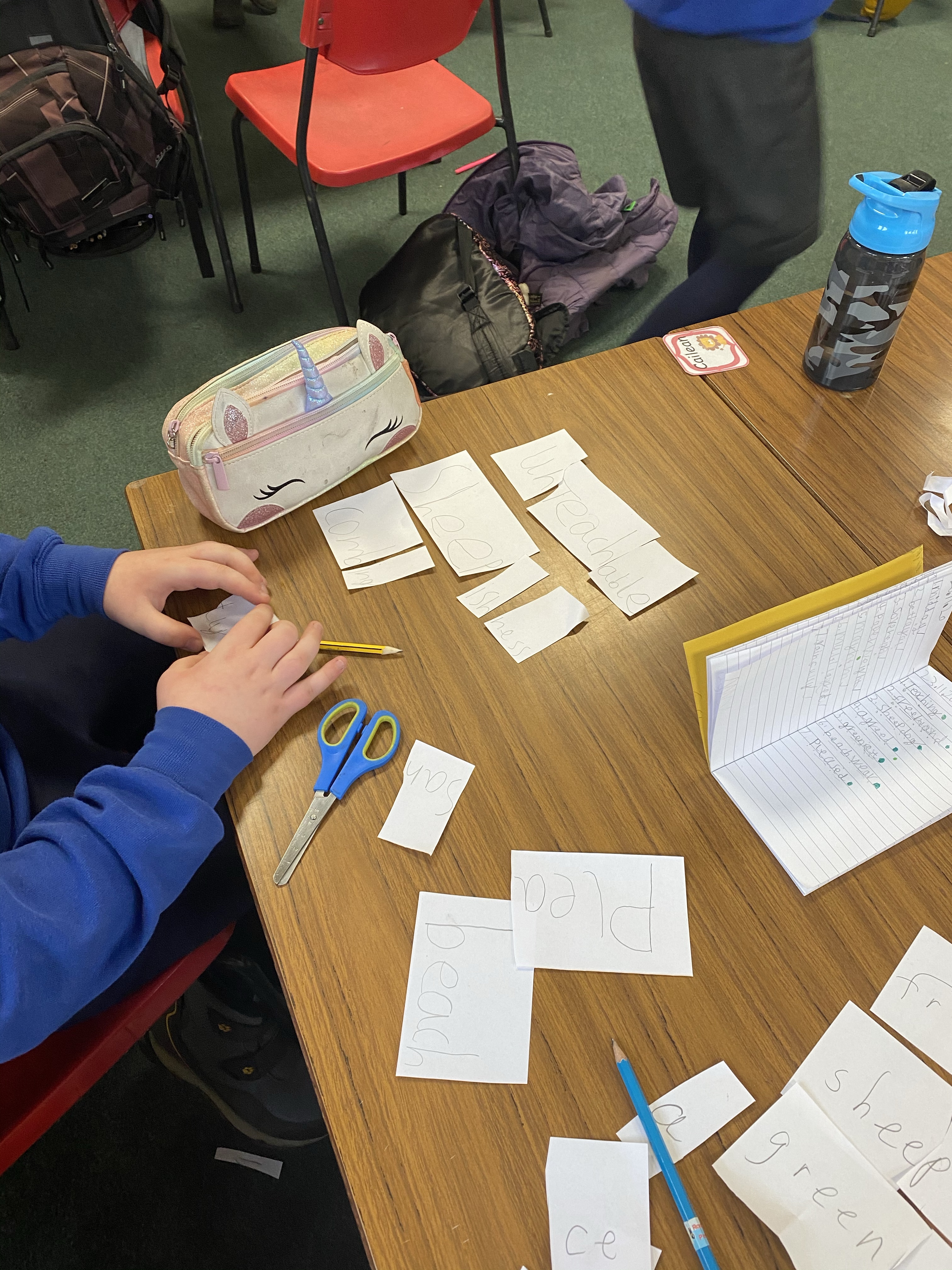 Cailean is proud of moving up in his spelling